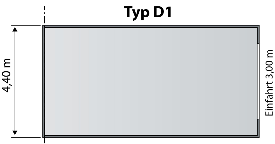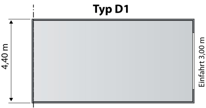 Typ D1: 220, Euro (7,90 Meter Länge*) Garagenbreite 4,40 Meter Kaution 500.-