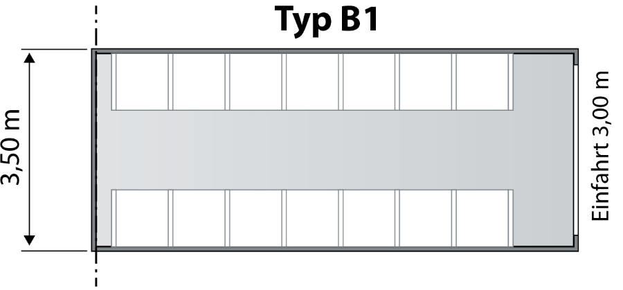 Typ B2: 360.-Euro (7,90 Meter Länge*) Garagenbreite 7,00 Meter Kaution 800.-