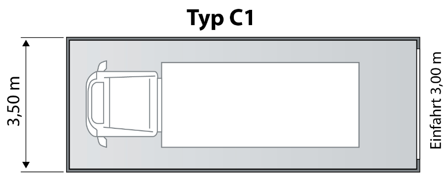 Typ C1: 200.- Euro (9,10 Meter Länge*) Garagenbreite 3,50Meter Kaution 400,-
